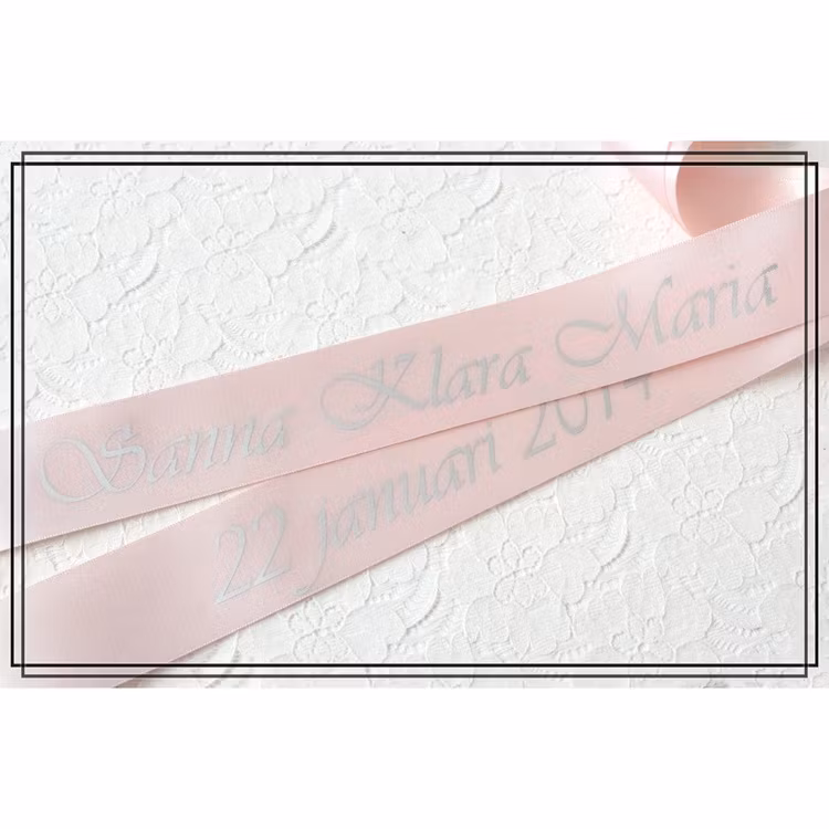 Satinrosetter på napphållare vars färgnyans är samma som doprosettens färgnyans är gjorda av band med samma färg.