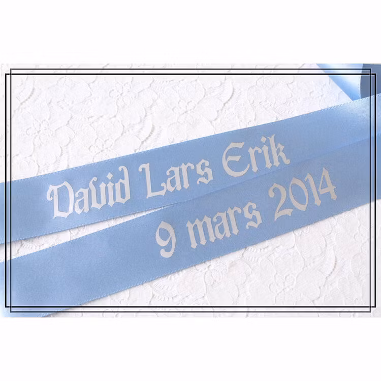 Om du önskar namn och datum på banden (eller annan valfri text) så fyller du i det i textrutorna ovan.